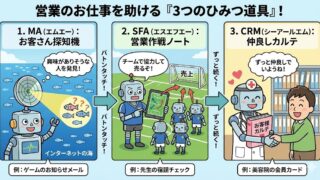 最近では、このリレーをスムーズにするために、前にお話しした「MA・SFA・CRM」という道具が使われているんだ💻