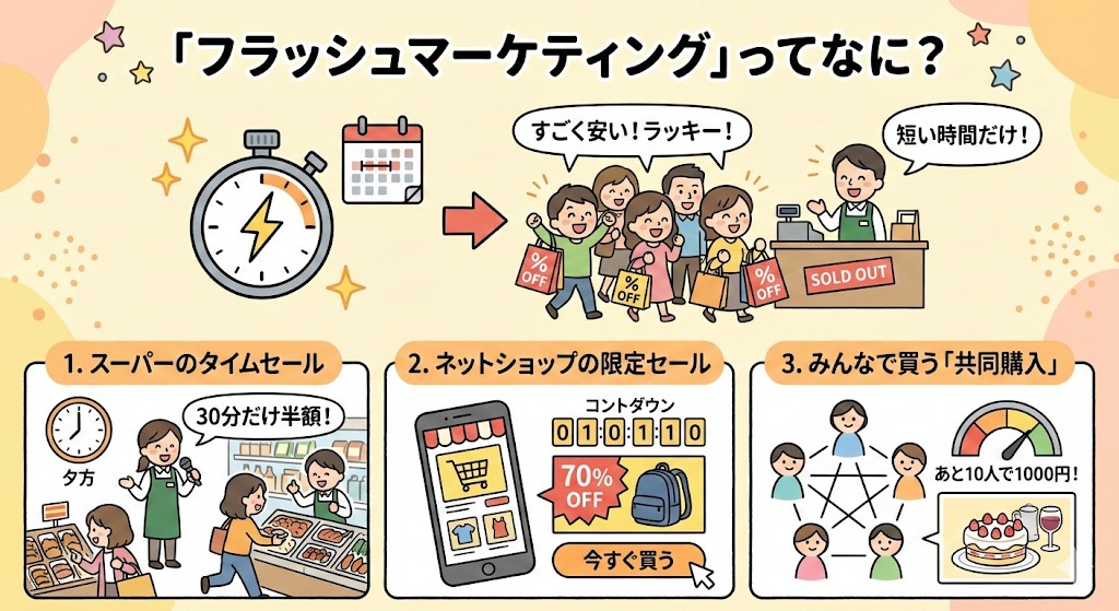 「フラッシュマーケティング」って何?期間限定のヒミツの安売りをわかりやすく解説 😊✍️