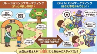 DBマーケティング(データベースマーケティング)は、お客さんの名前や年齢、これまでに何を買ったかといった情報を「秘密のノート(データベース)」にまとめて、一人ひとりにぴったりのサービスをする作戦のことだよ😇 例えば、いつもチョコを買う人には新しいチョコを教えたり、運動が好きな人にはスニーカーを教えたりするんだ✍️