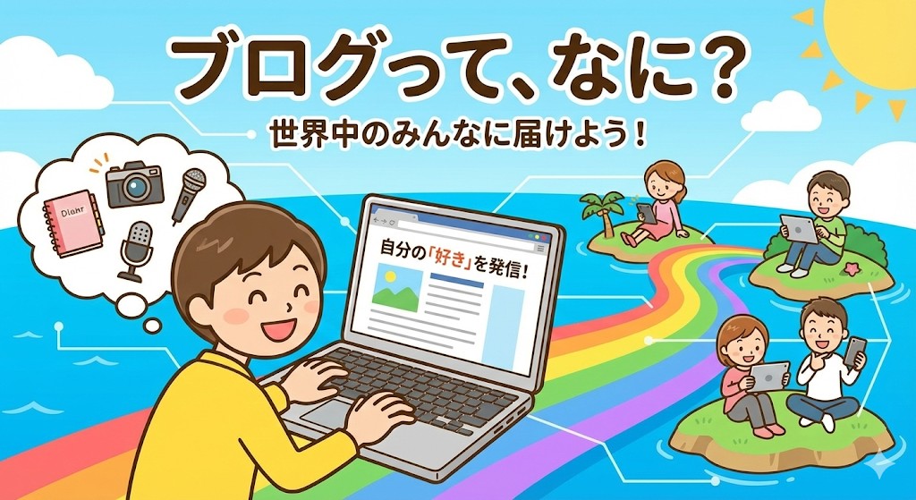 ブログは、自分の知識(ちしき)や経験(けいけん)を世界中に届けることができる「自分だけのメディア」です!🌈