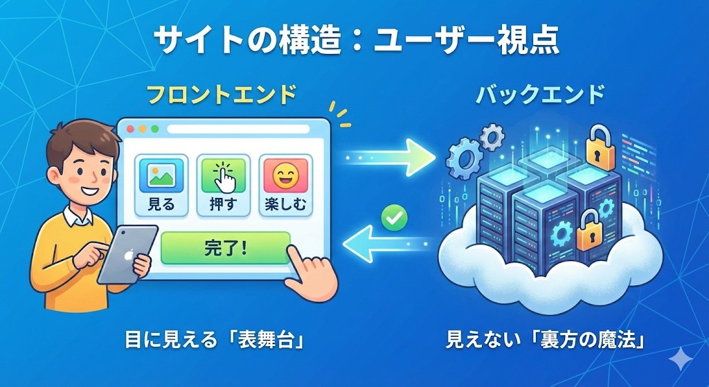 普段何気なく使っているサイトやアプリですが、ユーザーの目に見える部分と、絶対に見えない裏側の部分では、役割がハッキリ分かれているんですよ。✍️