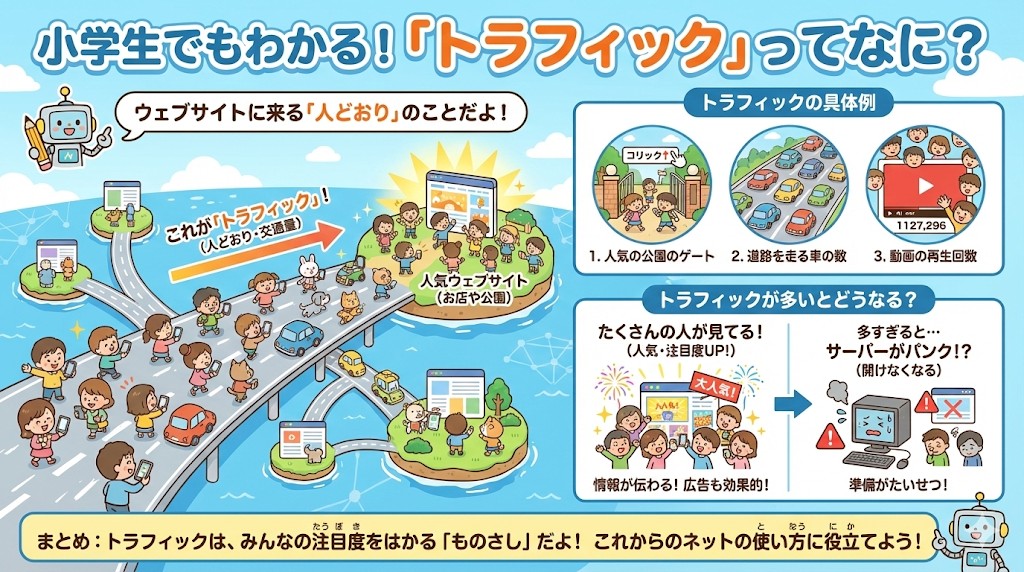 小学生でもわかる!「トラフィック」ってなに?インターネットの「人どおり」を学ぼう✍️