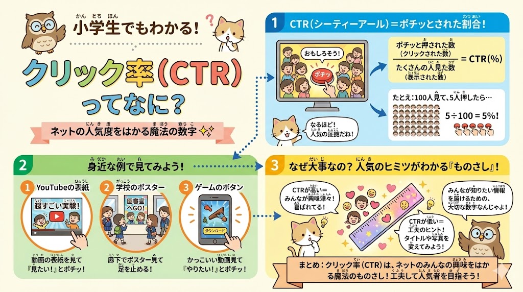 小学生でもわかる!クリック率(CTR)ってなに?インターネットの人気度をはかる魔法の数字 📝