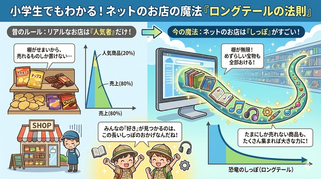 小学生でもわかる!ネットショップの魔法「ロングテールの法則」ってなに?