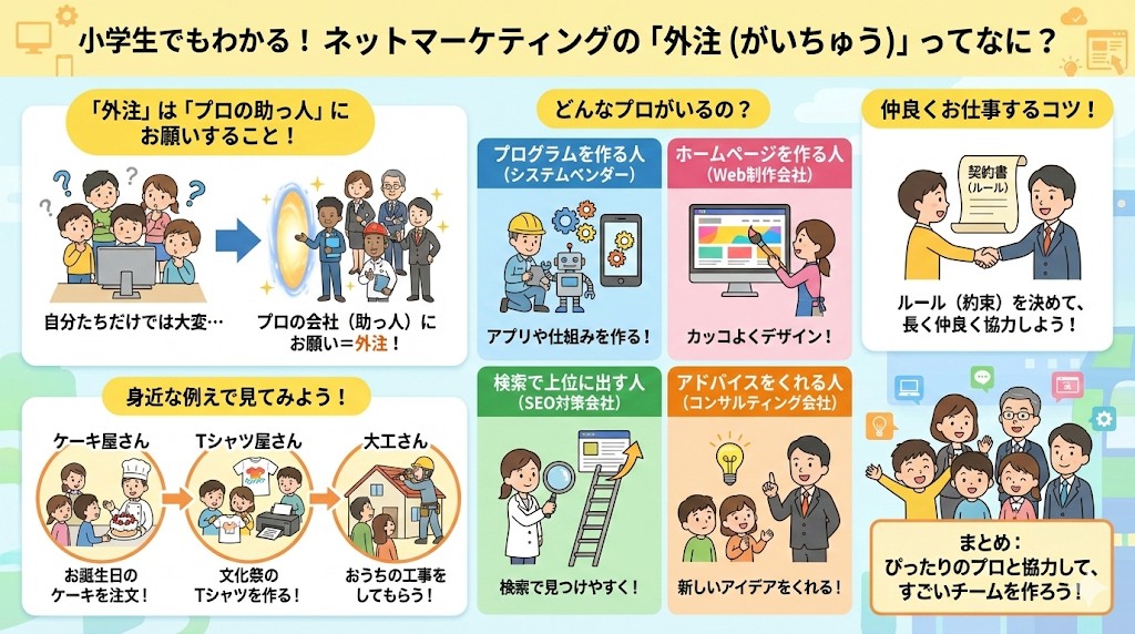 小学生でもわかる!ネットマーケティングの「外注管理(がいちゅうかんり)」ってなに?