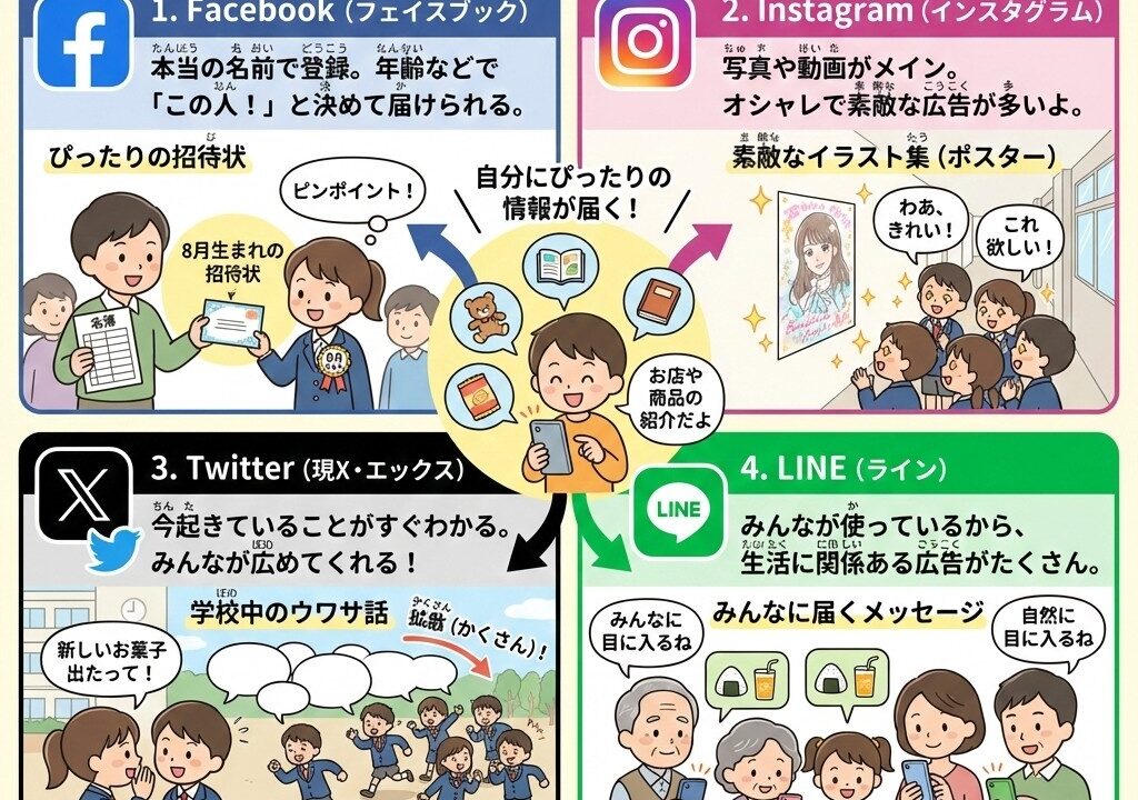 小学生でもわかる!SNS広告(えすえぬえすこうこく)ってなに?