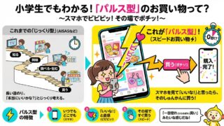 「あ、これ面白そう!」「調べてみようかな」「お母さんに相談しよう」「やったー!買ってもらえた!」「遊んでみたら最高だった!友達にも教えよう!」