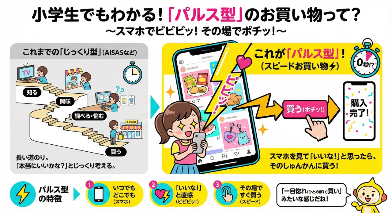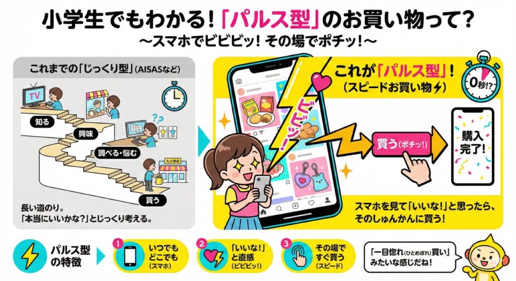 「パルス型の購入」とは、スマホを見ていて「ビビビッ!」ときたら、あれこれ考えずにその場ですぐ買っちゃう、スピードお買い物のことです。