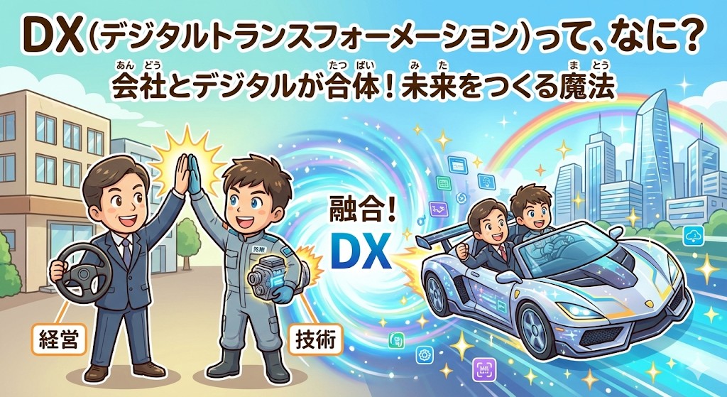 「DX」という言葉、最近よく耳にしますよね。これは単に「ITを使って便利にする」というレベルの話ではなく、「データやデジタル技術を武器にして、ビジネスのやり方や会社のあり方そのものを変えていこう!」という、経営の大きな変革を指します。