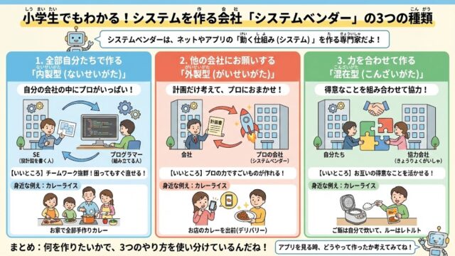 小学生でもわかる!システムを作る会社「システムベンダー」の3つの種類 📝